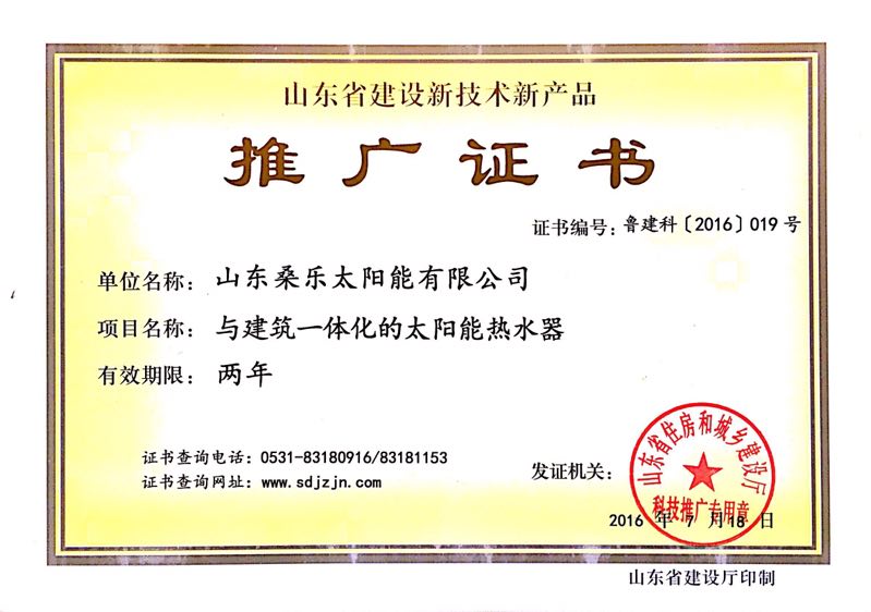 與建筑一體化太陽能熱水器推廣證